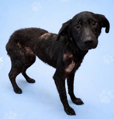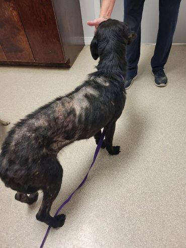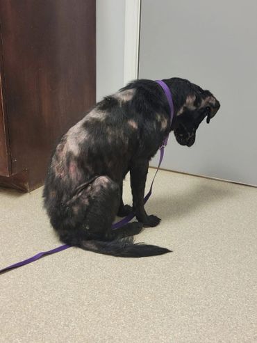 Caitlyn's skin is in terrible condition and will need a few months of meds and baths. She will also need to be spayed. Plus, she needs to put on some weight.
